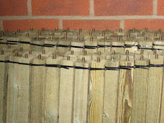 I have cut all the "C"s (x 50) and all the "B"s (x40). I have used all the best timber, so the shorter "A" struts are going to contain a few knots.
