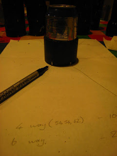 I have been marking up the bits of pipe to make dome hubs today. It's not as straightforward as you might think from a casual glance at a dome. Mine has 46 hubs, and I am putting my faith in online dome resources as usual for the information about the angles needed between struts. I have 6 pentagons (72 degrees), 5 regular hexagons (60 degrees), 5 part-hexagons, regular (4 @ 60 degrees), 20 irregular hexagons (56 and 62 degrees) and 10 irregular part-hexagons (56 and 62 degrees).